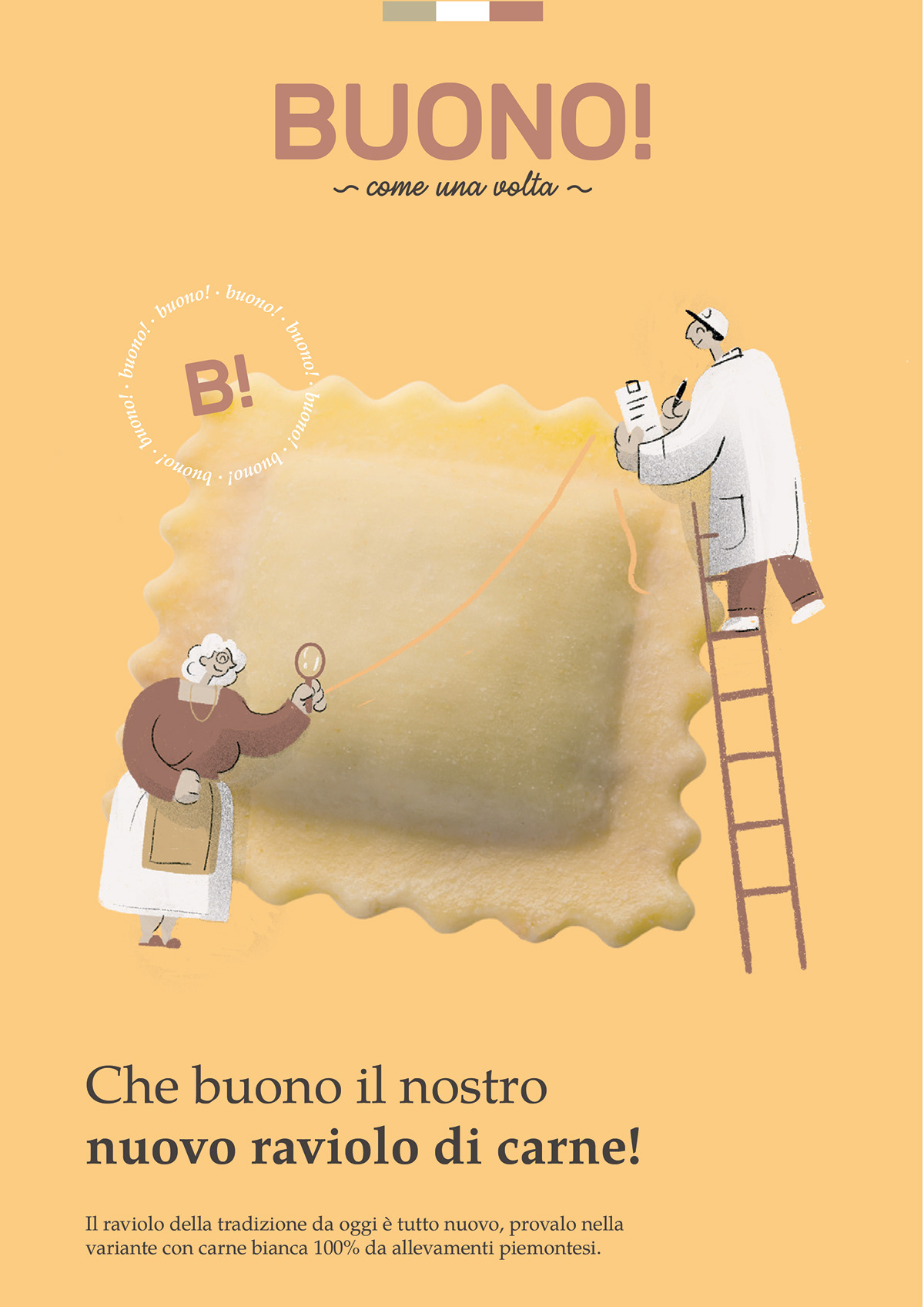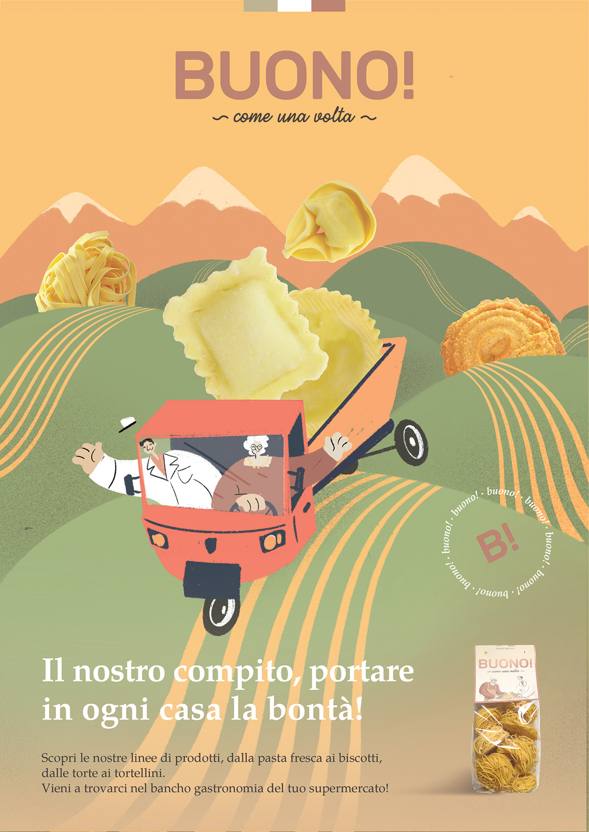 Buono! Come una volta is a brand created in collaboration with Laura Tarò, Andrea Virzì and Lorenzo Salomone for the distribution of Michelis srl products in the large-scale retail trade.